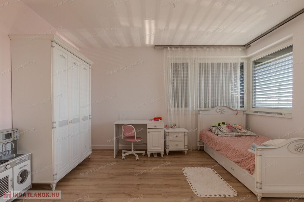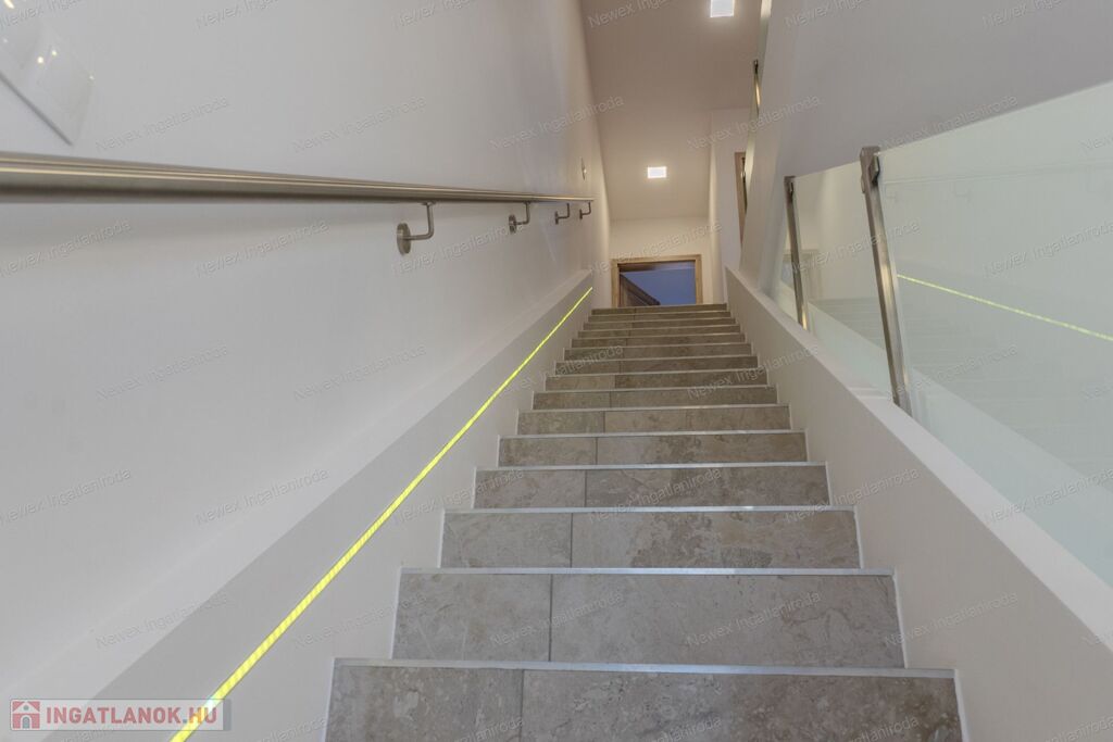 A földszinten tágas, világos amerikai konyhás nappali biztosítja a családi élet központját, közvetlen terasz- és kertkapcsolattal. Ezen a szinten egy hálószoba, fürdőszoba és kamra is helyet kapott.
