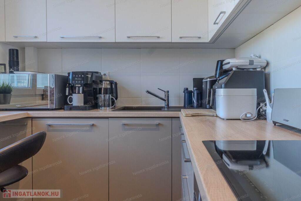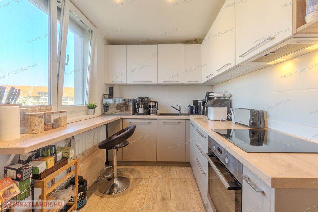 - modern, új konyhabútor, beépített sütővel, főzőlappal és mosogatógéppel (melyek a vételár részét képezik)