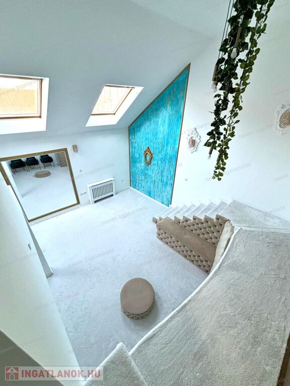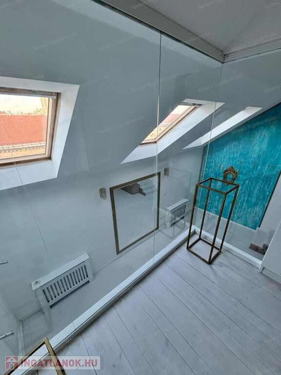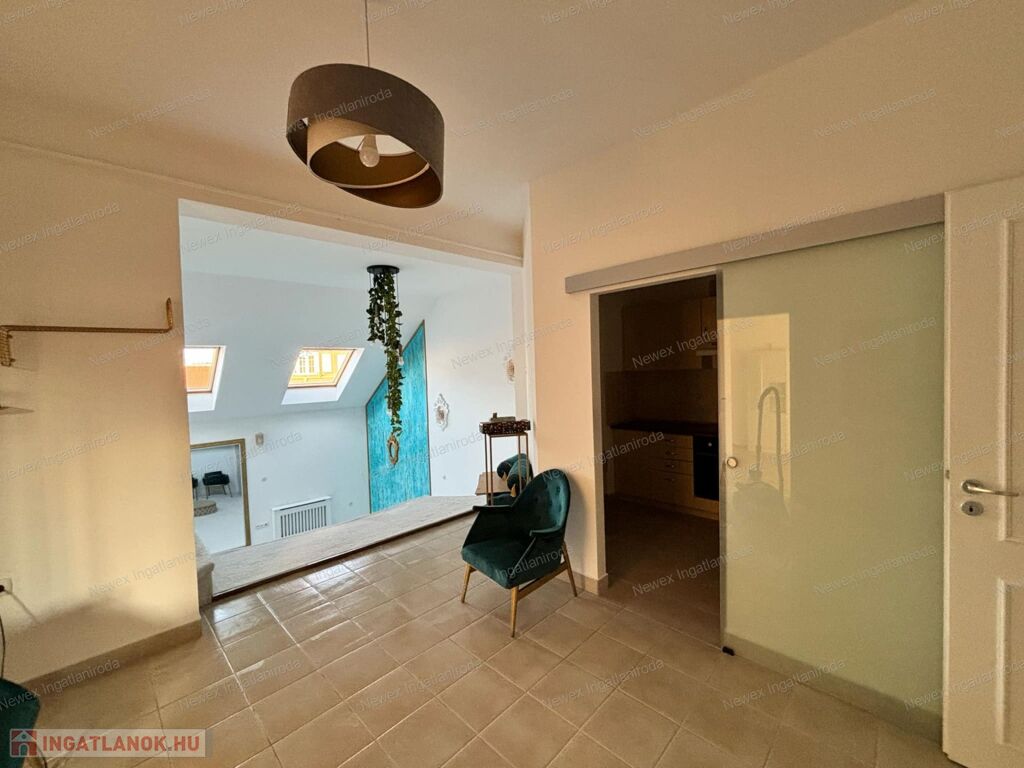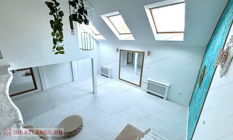 A tetőtéri elhelyezkedésnek köszönhetően az egész lakást természetes fény járja át.