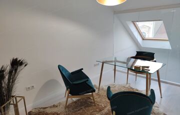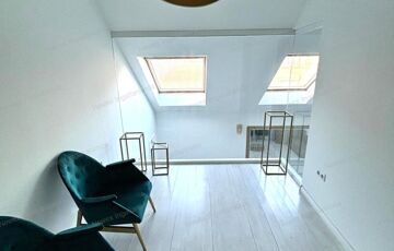 A tetőtéri elhelyezkedésnek köszönhetően az egész lakást természetes fény járja át.